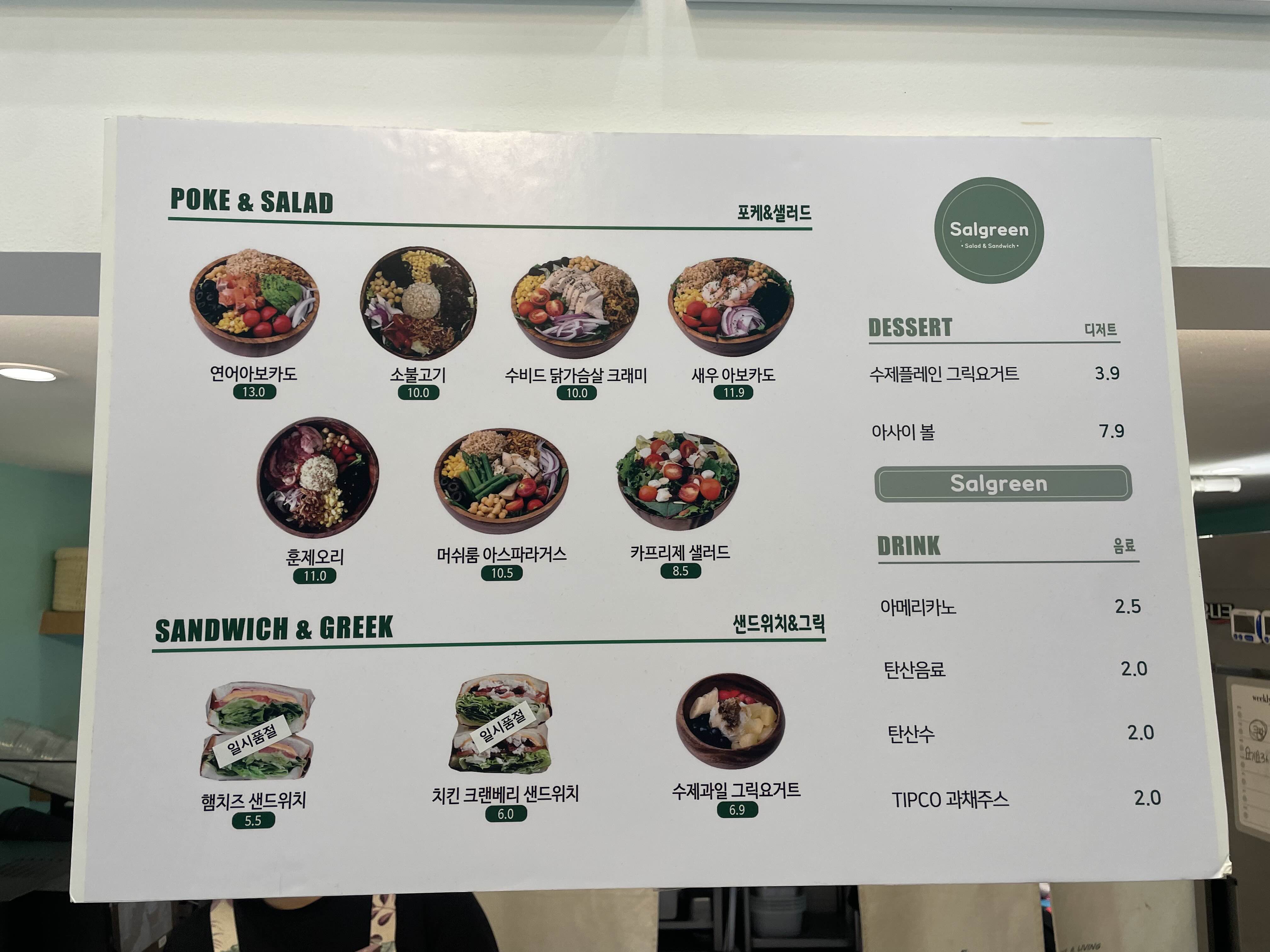 수서역 포케 맛집 샐그린 메뉴판입니다.