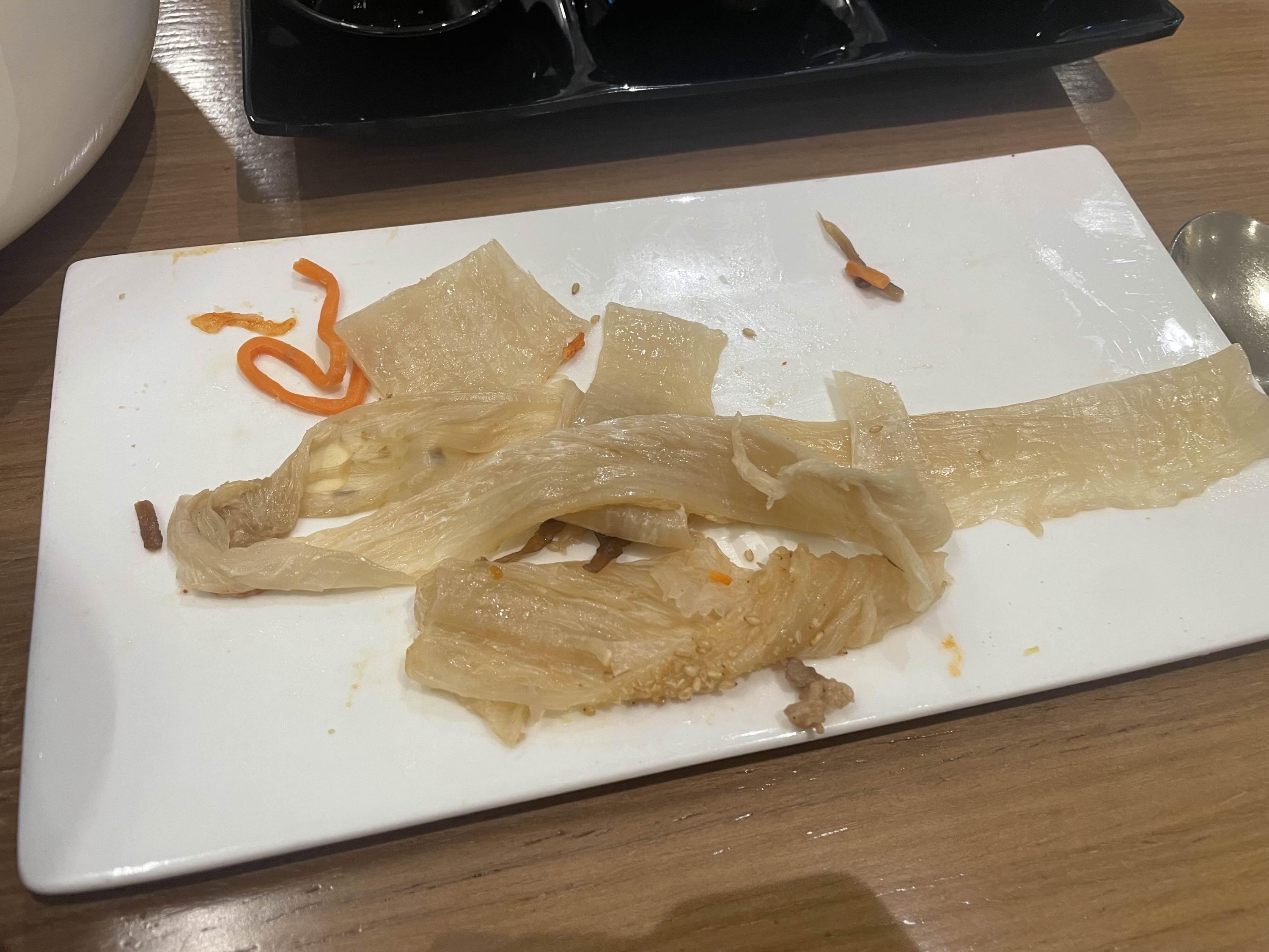 그래서 묵은지를 벗겨내고 먹었습니다.....