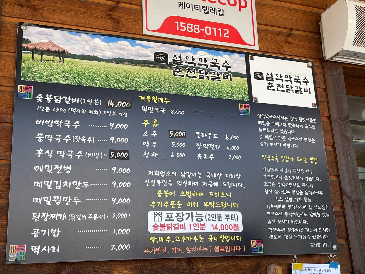 가평 맛집 설악막국수 춘천닭갈비 메뉴판입니다.