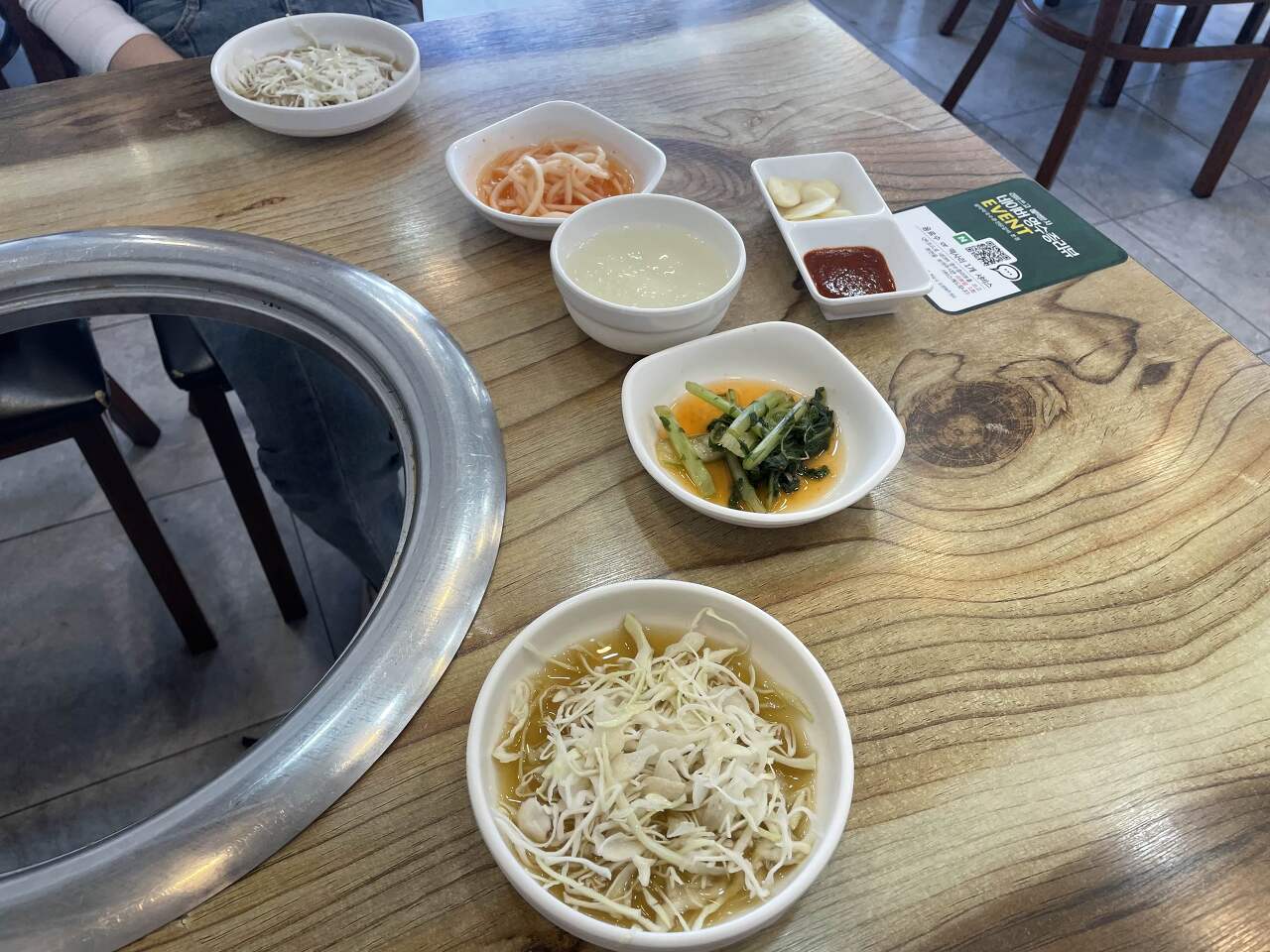 무생채, 동치미, 열무김치, 양배추가 나왔어요.