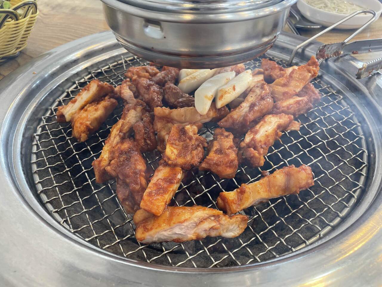초벌이 된 닭갈비를 테이블에 내려놓자마자 맛있는 냄새가 폴폴~ 났습니다.